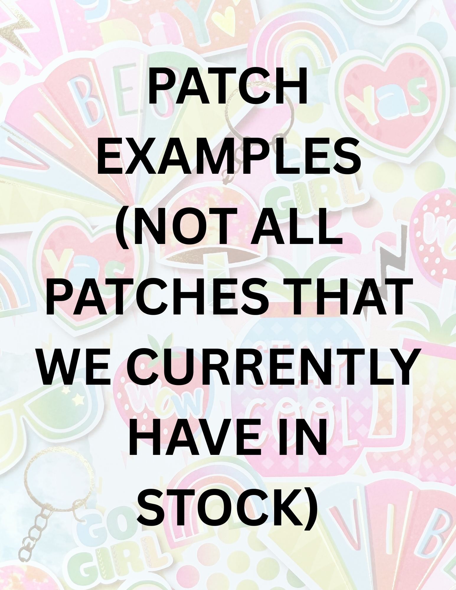 Photos of some of the patches that we carry. They are ever evolving and we are always adding inventory.